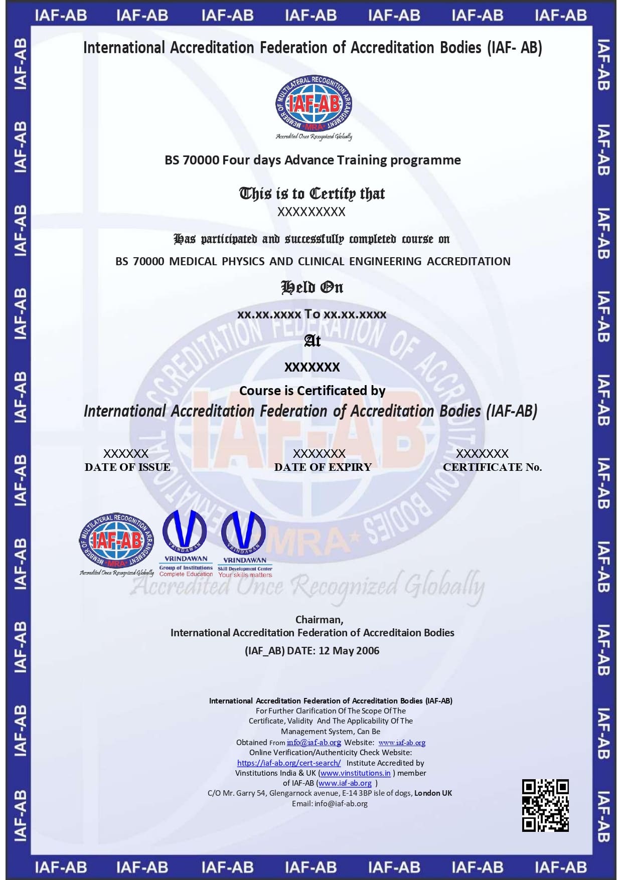 IAF-AB organizing 4 Days Advance Training Programme Classroom & online Training course for BS 70000 Medical physics and clinical engineering accreditation series management system.