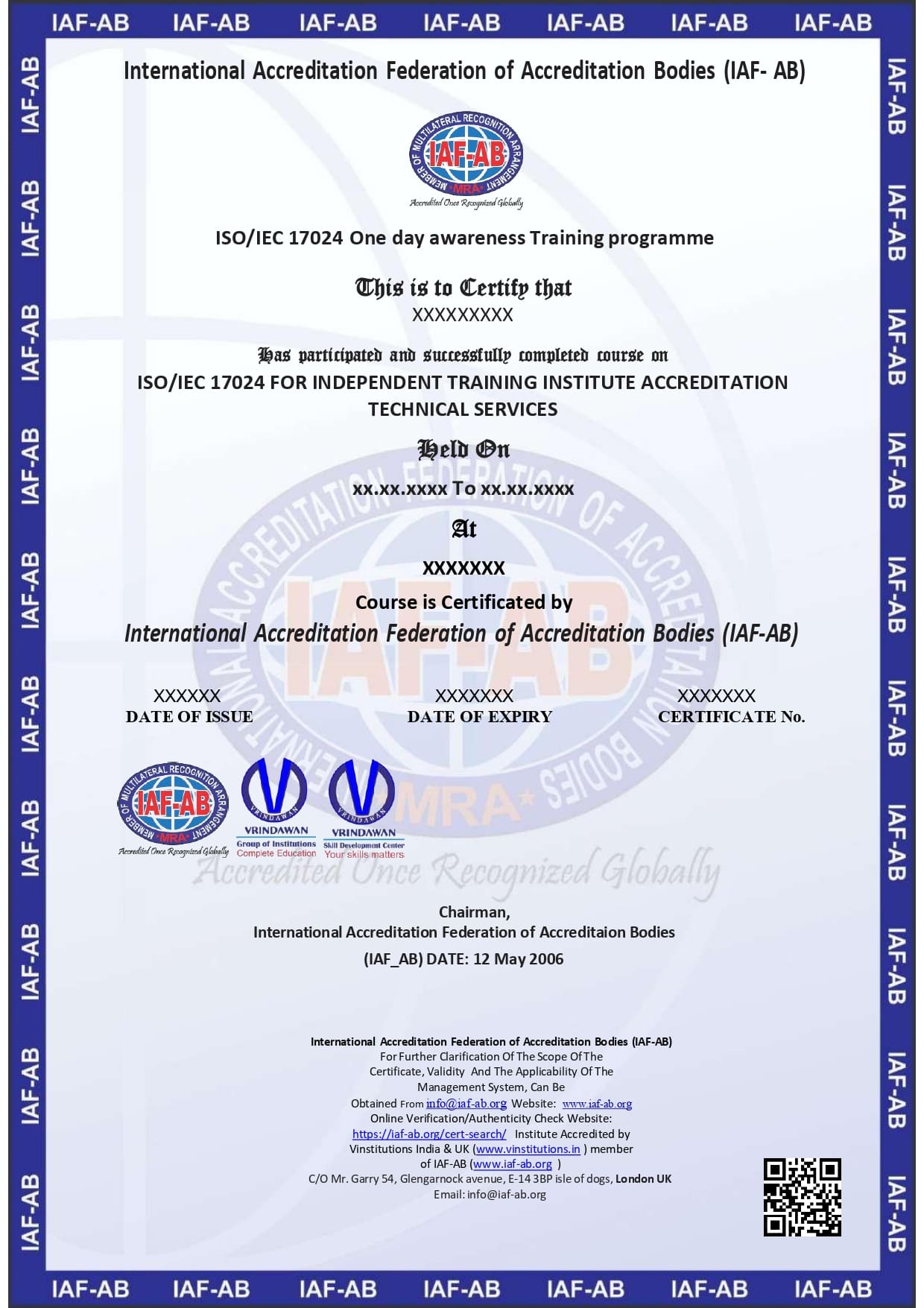 IAF-AB organizing One Day Awareness Programme Classroom & online Training course for ISO/IEC 17024 For Independent Training Institute Accreditation Technical Services series management system.